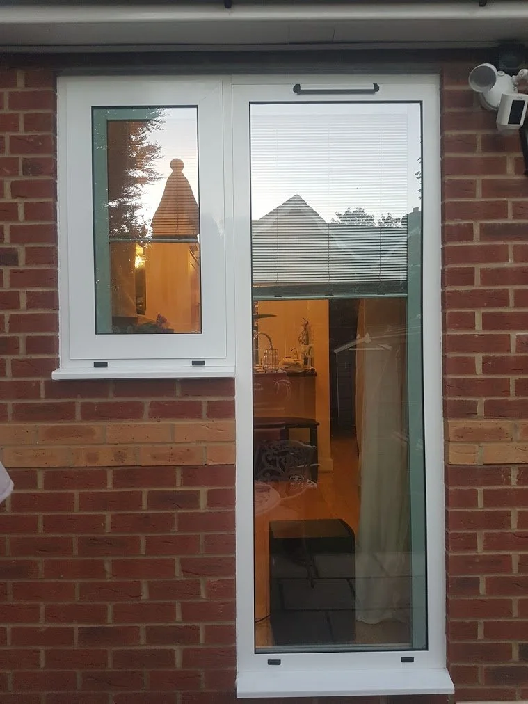 The installation included a fixed thermal aluminium window fitted with double low emission toughened glazing and integrated internal blinds. This energy efficient aluminium fixed window allows natural light to enter the room while maintaining excellent insulation. The double glazed unit incorporates low E glass technology to reduce heat loss and improve overall thermal performance. The internal blinds, sealed within the glazing unit, provide privacy and light control without the need for external curtains or maintenance, making them ideal for contemporary residential properties.